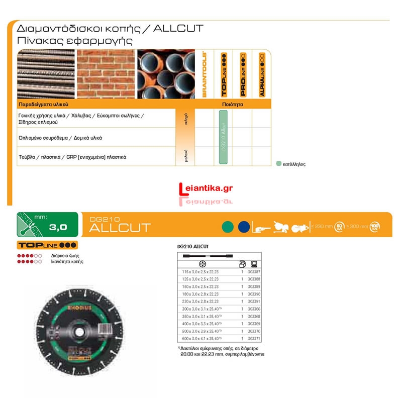Γενικός Δίσκος για οπλισμένο σκυρόδεμα, οικοδομικά υλικά, τούβλα, μέταλλα, πλαστικό, ίνες γυαλιού, ενισχυμένο πλαστικό