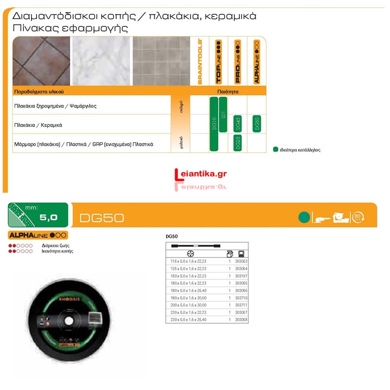 Ειδικός δίσκος για όλους τους τύπους των πλακιδίων, κεραμικών, clinker, οροφής και φυσικές πέτρες.