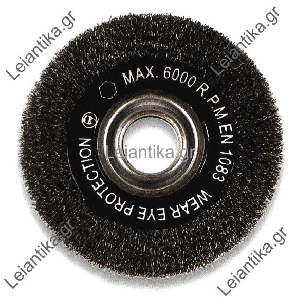 Συρματόβουρτσα γωνιακού τροχού για μέταλλα με κατσαρωμένο σύρμα 0.30mm στις 6000 στροφές.